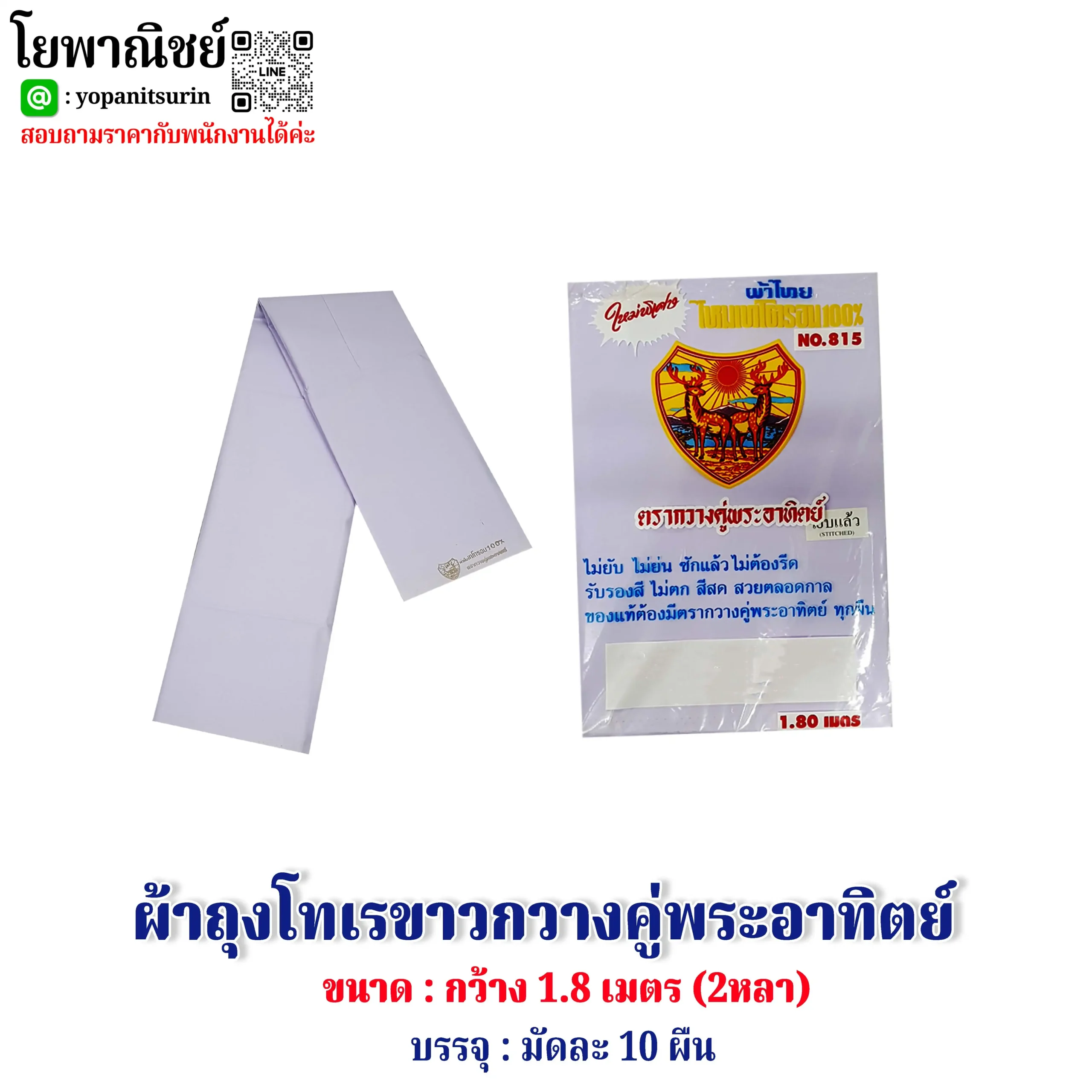 -ผ้าระบายอากาศได้ดีเหมาะสำหรับปฏิบัติธรรม -ใช้สวมใส่เป็นเครื่องแต่งกาย -ใช้เป็นผ้าอเนกประสงค์ -เหมาะสำหรับปฏิบัติธรรม งานบุญ งานประเพณีหรือนุ่งอยู่บ้าน