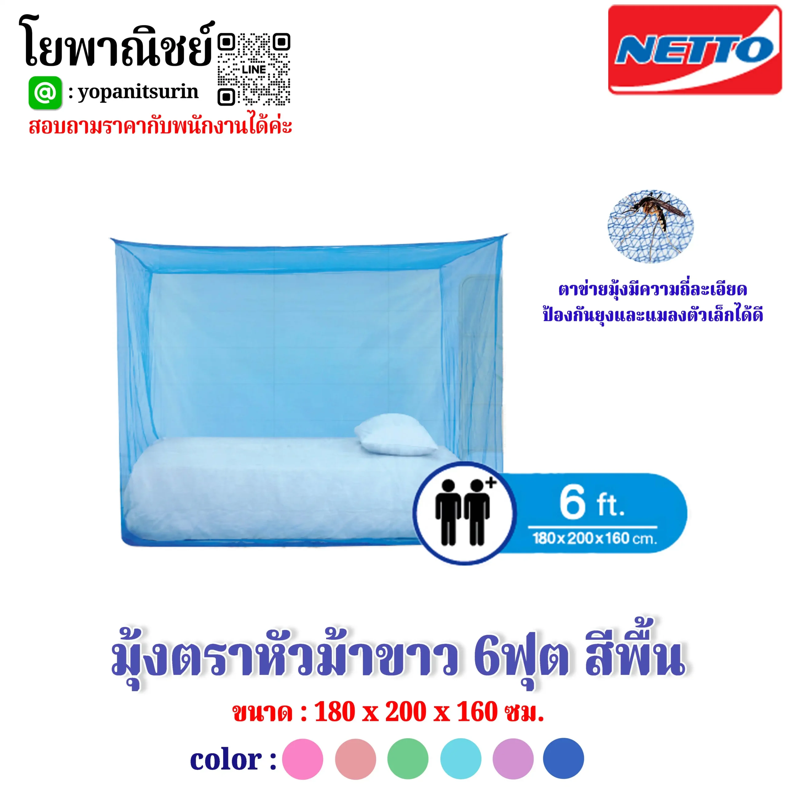 มีหลากหลายขนาดทั้ง 2 ถึง 3 คนนอน มีให้เลือก 6 สี ฟ้า / ชมพู / ส้ม / ม่วง / เขียว / ทะเล