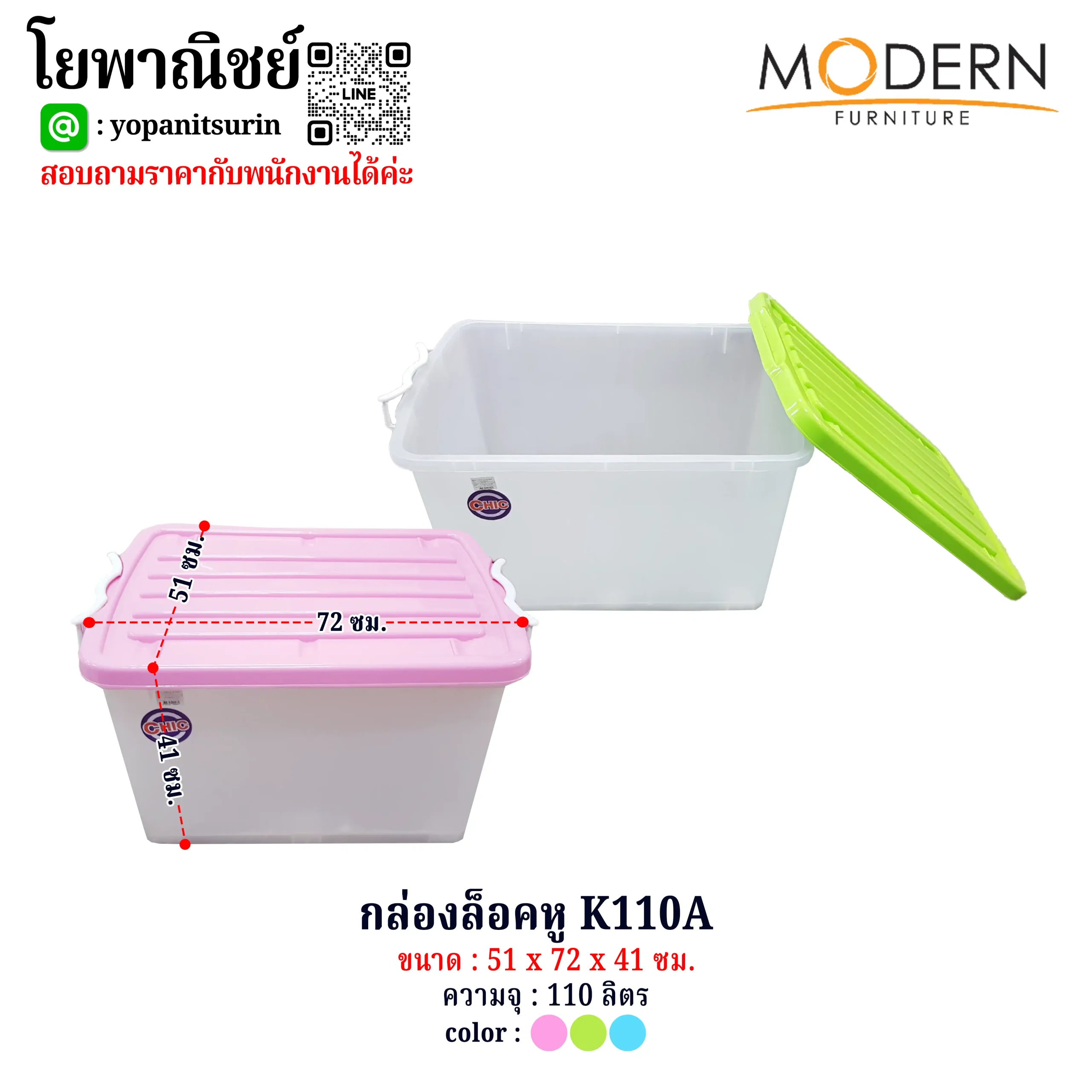 • กล่องล็อคหูK110A กล่องใส ฝาสี ความจุ 110ลิตร