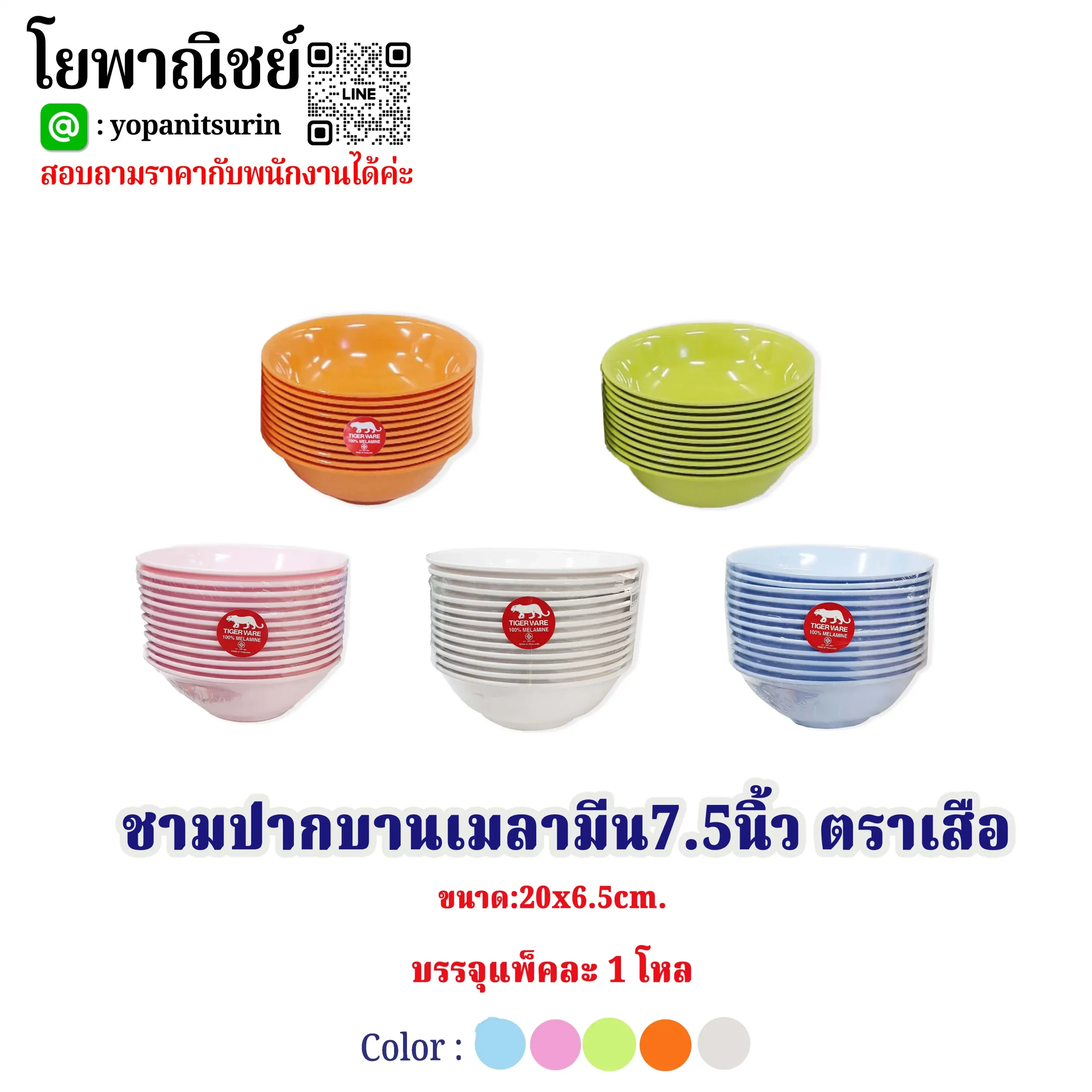 / ชามปากบานเมลามีน7.5นิ้ว ตราเสือ