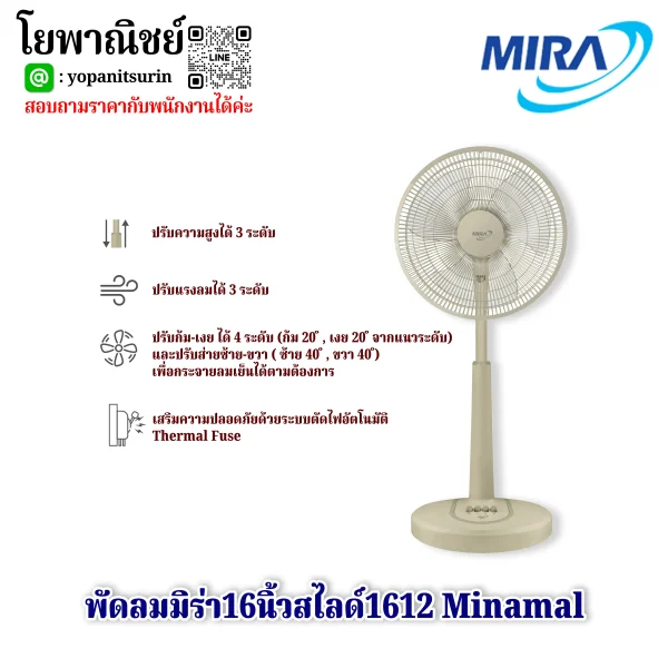 พัดลมมิร่า16นิ้วสไลด์1612 Minimal