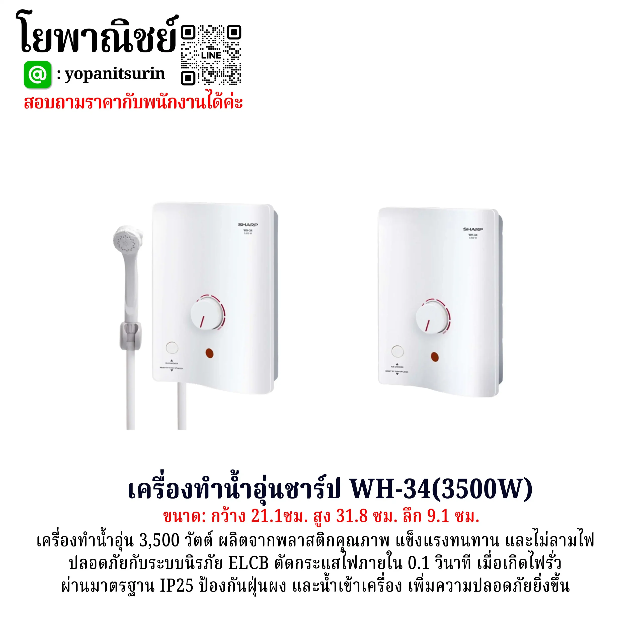 เครื่องทำน้ำอุ่นชาร์ป WH-34(3500W)