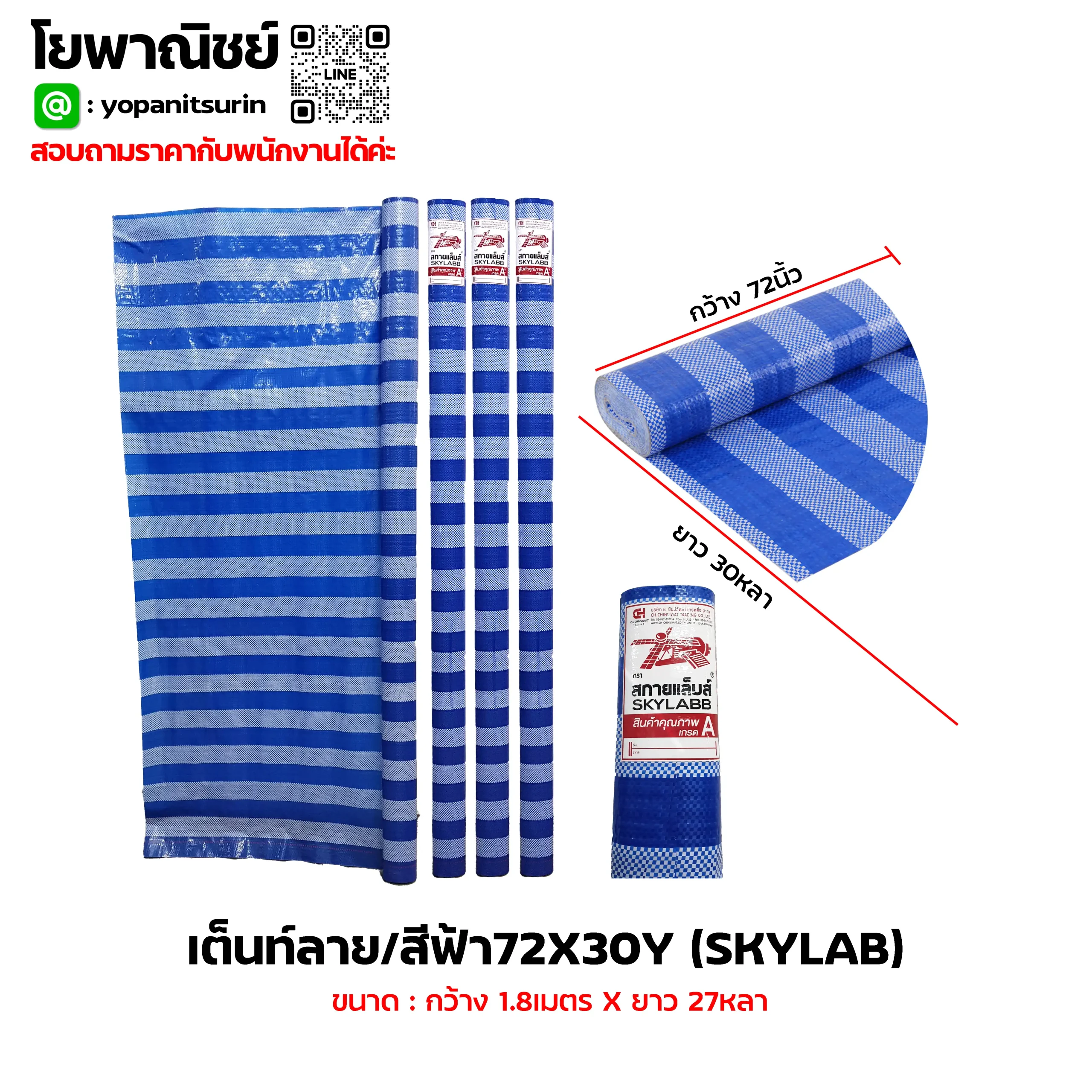 เต็นท์ลาย/สีฟ้า 72x30Y (SKYLAB)