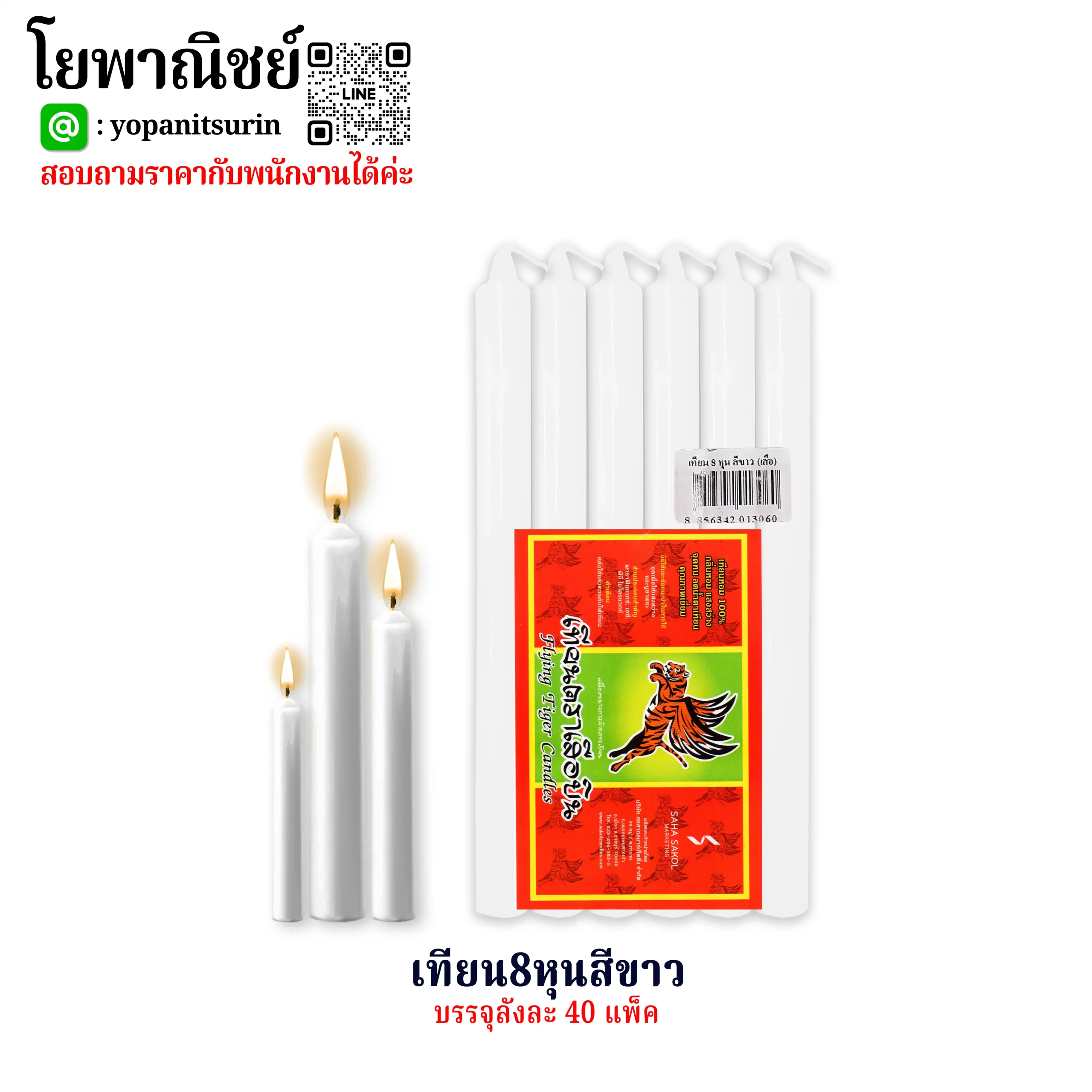 เทียน8หุนสีขาว